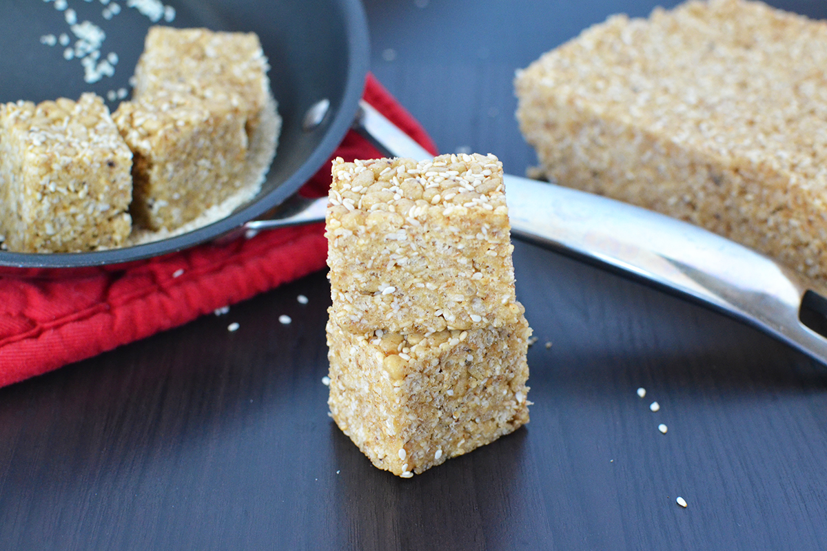 Sesame crisp bars are nutty, sweet bars, with tons of crunch in every bite. These bars are sure to delight true sesame fans and can quite possibly turn non-sesame lovers into converts. Since sesame seeds are not utilized in baking too often, we suggest everyone giving these simple bars a shot. Toast up those sesame seeds and get ready for a treat that will make your taste buds sing and your sweet tooth pleasantly surprised. If sesame seed paste is just not your thing, then feel free to swap it with peanut butter for a different flavor altogether... we still guarantee deliciousness.